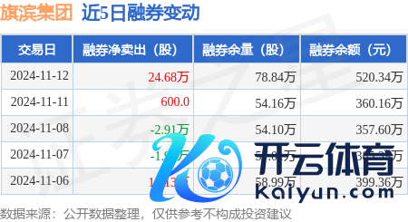 本站讯息万博manbext体育官网娱乐网,11月12日,旗滨集团(601636)融资买入2669.71万元,融资偿还3016.01万元,融资净卖出346.3万元,融资余额4.84亿元。