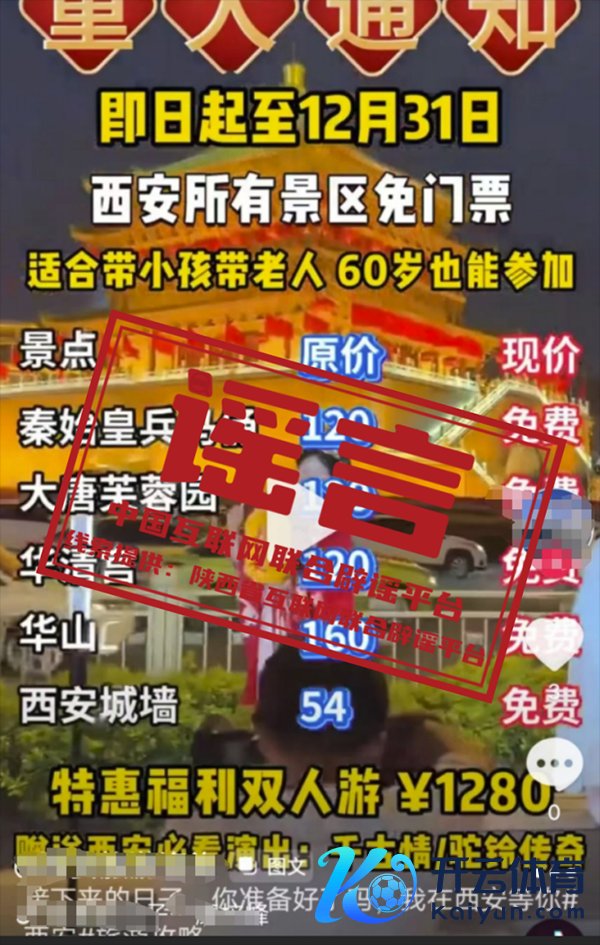 真相:近期,有网罗平台传播“西安旅游官方新策略:即日起至12月31日,西安扫数景区免门票”等相似信息。对此,西安文旅之声官方微博11月16日发布音信称,相关“西安扫数景区免门票”的信息均为诞妄信息,请精深旅客提神甄别。(来源:@陕西省网罗举报中心、@西安文旅之声)