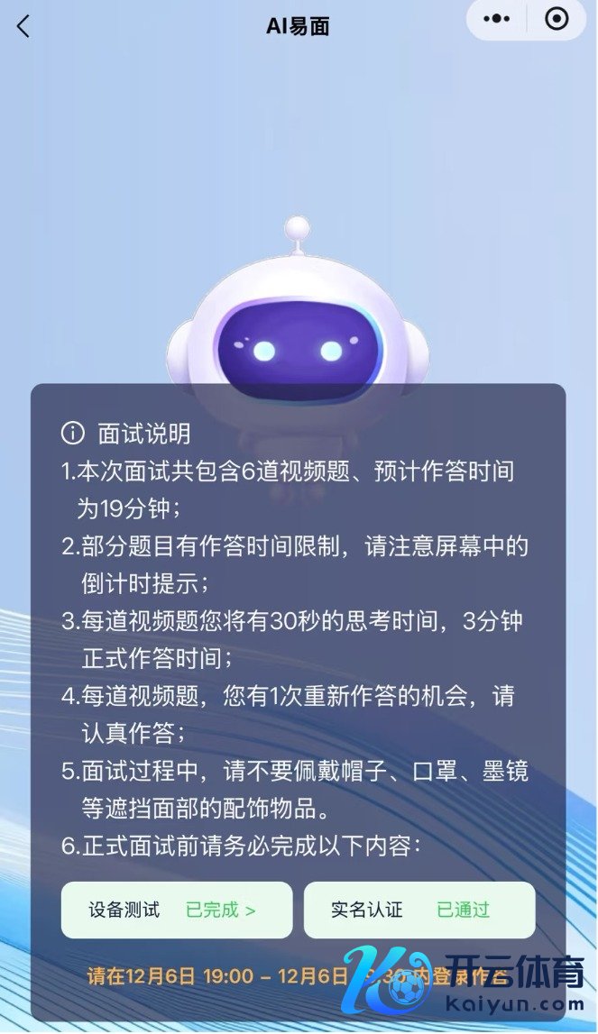 “简历送达量每年递加,传统单纯东谈主力口试的模式还是匹配不上了。AI口试官一天内能完成上千场口试,在一定进程上能缓解东谈主力资源的压力,检朴了大宗时期和资源。口试系统来自第三方,也能作念到平正平正。”上述银行里面东谈主士示意。