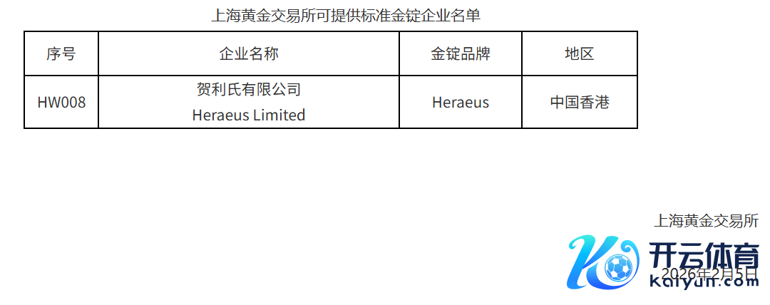 上海黄金来回所:新增贺利氏有限公司为境外可提供轨范金锭企业上海黄金来回所:新增贺利氏有限公司为境外可提供轨范金锭企业