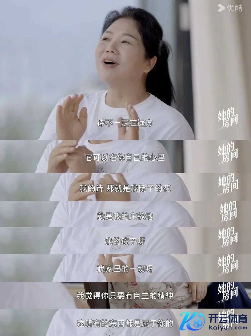 “她想昭着了好多咱们皆没想昭着的事,咱们皆在喊现实不好,令东谈主窒息,咱们要追求诗和远处,但是咱们家门口的花叫什么,咱们谁皆不知谈,你到哪去找诗?你我方身边的诗你皆不看。是以我合计,她尽头厚实地替咱们经管了好多咱们的困惑。”