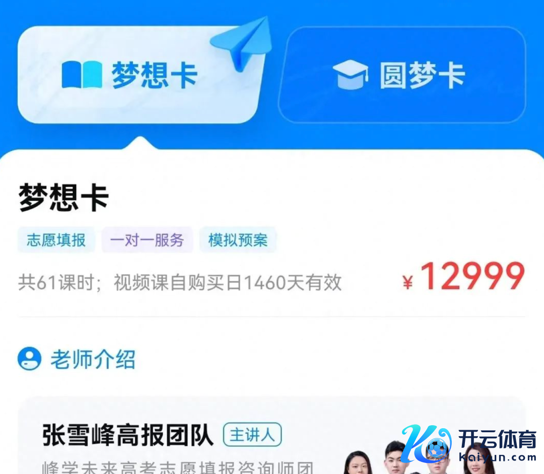 据腾讯《深网》报说念,2024年高考季,张雪峰直播间推出的11999元的空想卡和17999元的圆梦卡,2万个高考志愿填报服务限额在3小时内售罄,创下3小时收入2亿元的销售传闻。