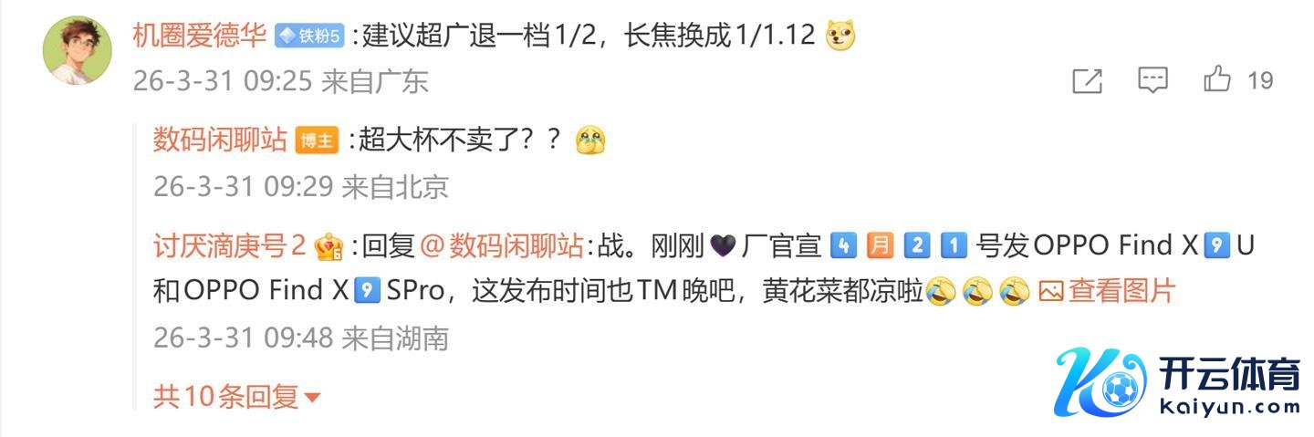 后续灵验户在挑剔区泄露:“冷漠超广退一档 1/2,长焦换成 1/1.12”,博主回话说念:“超大杯不卖了??”;另又名用户则泄露:“电板得大啊”,博主则回话说念:“我猜会作念到 8 来源”。