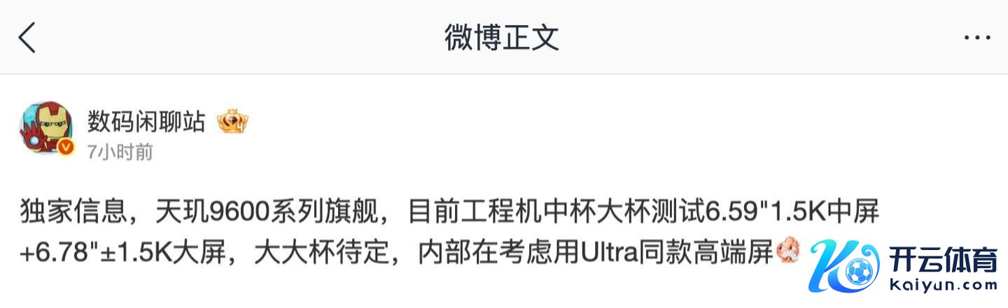 据IT之家此前征引博主音书,某厂天玑 9600 系列旗舰家具的中杯、大杯在测试 6.59 英寸 1.5K 中屏、6.79 英寸 ±1.5K 大屏,大大杯待定,里面酌量用 Ultra 同款高端屏。展望为 OPPO 旗下。