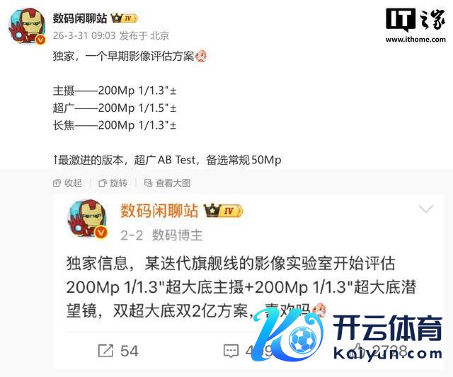 IT之家 3 月 31 日音书,博主 @数码谈天站 今天在微博发文,曝光某厂新机的早期影像评估决策。