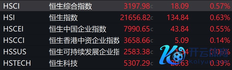 恒生指数涨0.63%,恒生科技指数涨0.39%,恒生国企指数涨0.55%。比亚迪股份涨超4%改革高,比亚迪电子涨近3%,比亚迪秘书将全系搭载高阶智驾。科技股无数飞腾,阿里巴巴、好意思团涨超2%。