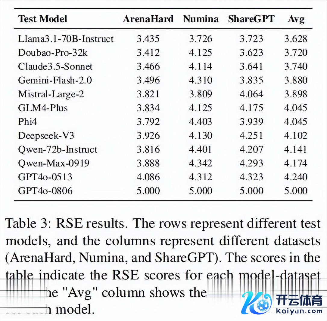 RSE成果透露,GPT系列模子(如GPT4o-0513,平均一样度为4.240)的反映一样性最高。比拟之下,Llama3.1-70B-Instruct(3.628)和bao-Pro-32k(3.720)的一样性较低,标明它们的蒸馏进程较低。而**DeepSeek-V3(4.102)和Qwen-Max-0919(4.174)**则弘扬出较高的蒸馏水平。