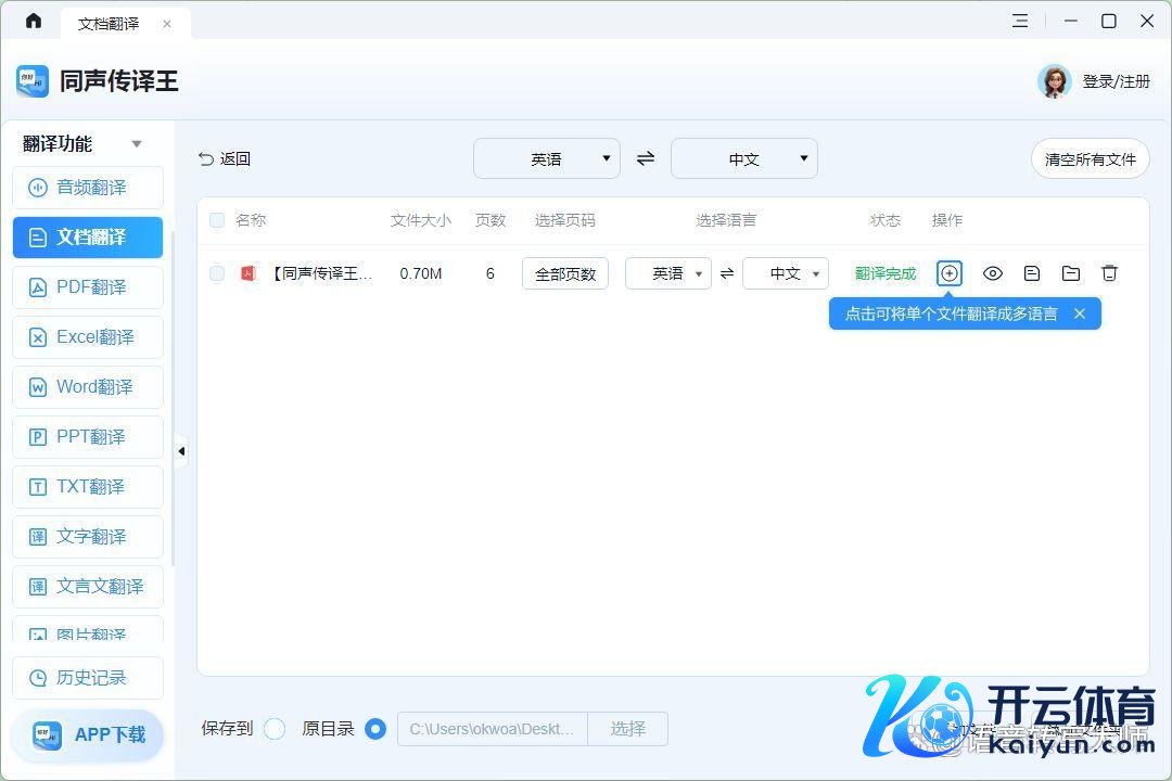 除了同声传译功能外,它还维持翻译PDF、Word、PPT、Excel等种种文献。在主页就能快速找到文档翻译功能。